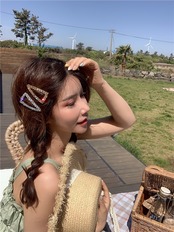 ☆KOREA トライアングルヘアピン サイド ☆ ゴールド シルバー パール ダイヤモンド エメラルド オパール スパンコール ルビー サファイア ガーネット アクアマリン オニキス 宝石 石 A106348814378
