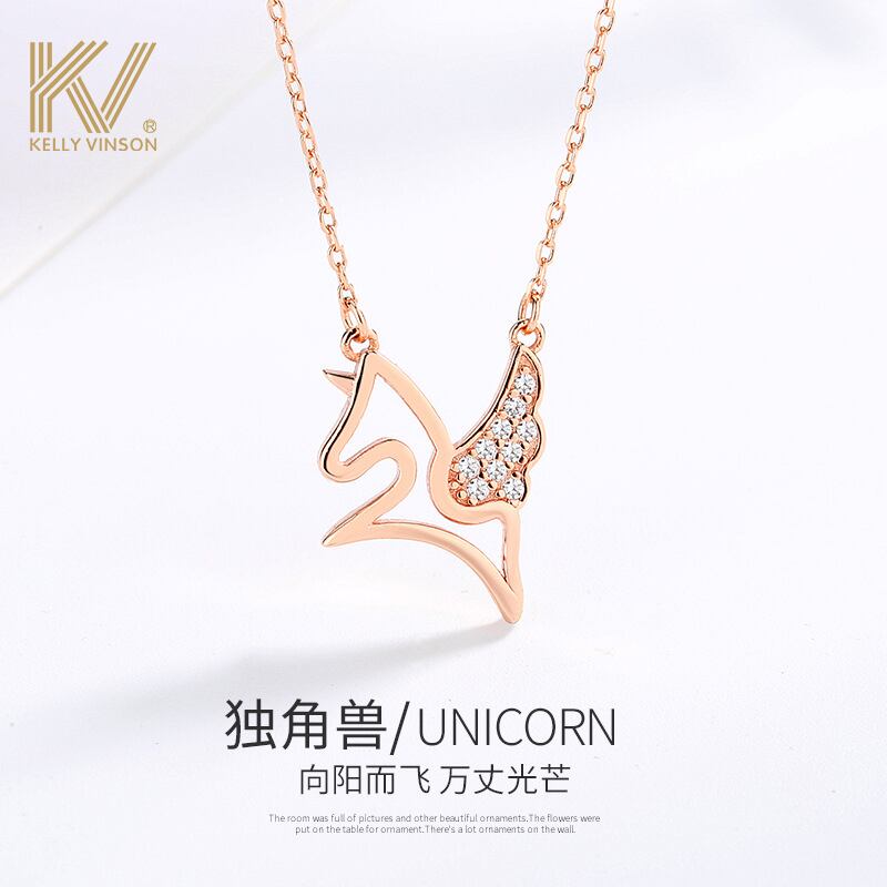 色:ユニコーンネックレスローズゴールドフリーユニコーンピアス