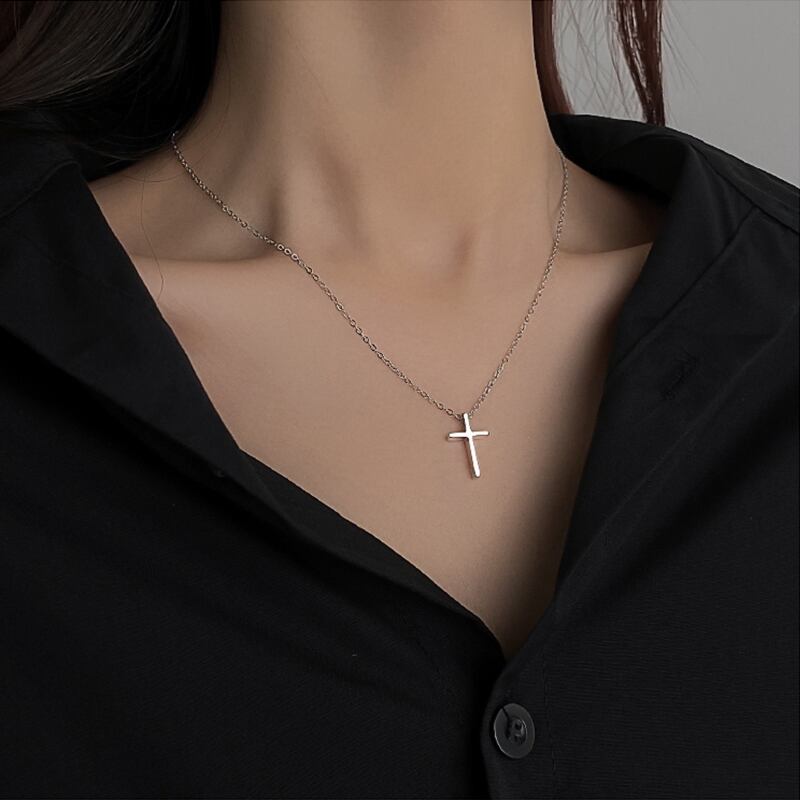 色:クロスネックレス-ホワイトゴールド全身925スターリングシルバー
