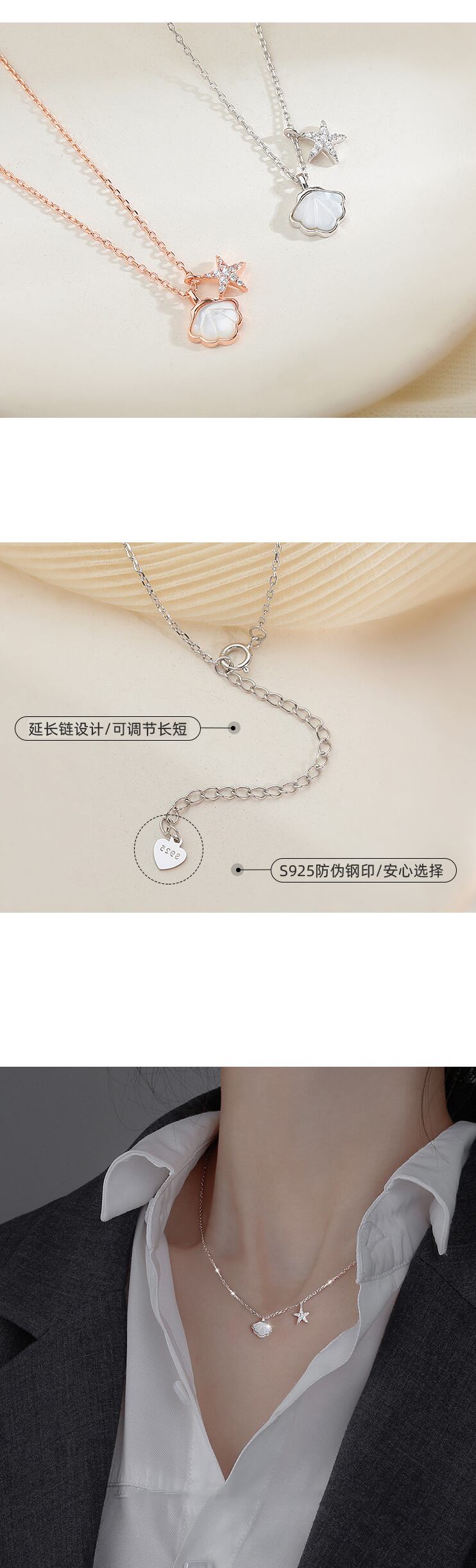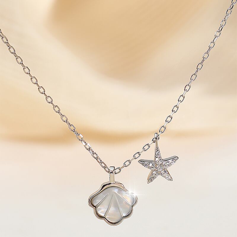 色:ヒトデシェルネックレスホワイトゴールド,ヒトデ貝殻ネックレスローズゴールド