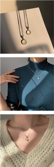 色:ホワイトカルセドニーネックレス-ホワイトゴールド全身925スターリングシルバー