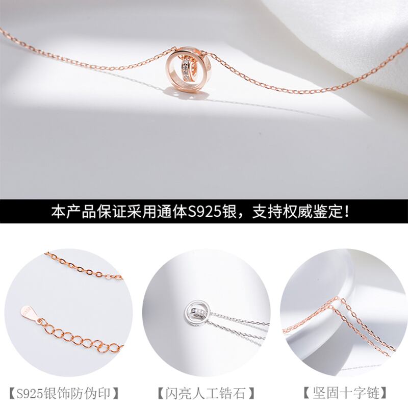 色:ダブルサークルネックレス-ローズゴールド,ダブルサークルネックレス-ホワイトゴールド