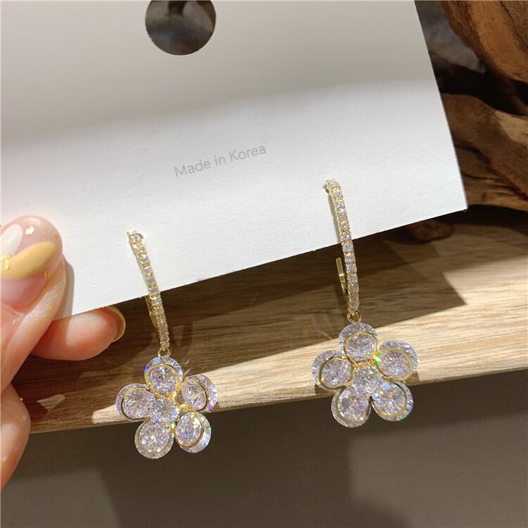☆KOREA Flowerデザイン シルバーラインストーンロングイヤリング 指輪 フラワーデザイン 銀 ☆ ゴールド シルバー パール ダイヤモンド エメラルド オパール スパンコール ルビー サファイア ガーネット アクアマリン オニキス 宝石 石 A1026312357973 | fragola