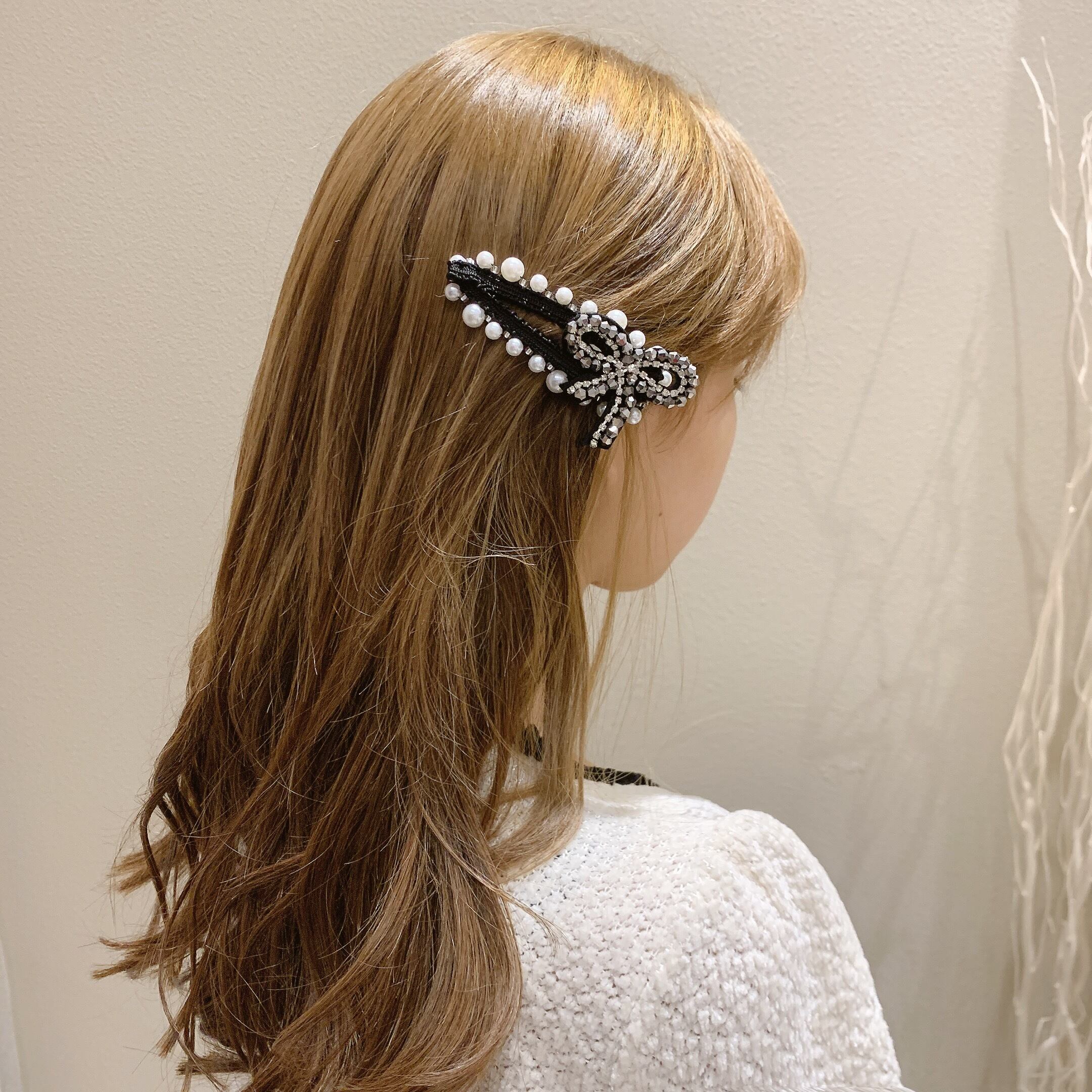 ☆KOREA サイドヘアピン リボン ☆ ゴールド シルバー パール ダイヤモンド エメラルド オパール スパンコール ルビー サファイア ガーネット アクアマリン オニキス 宝石 石 A1031148100593 | fragola