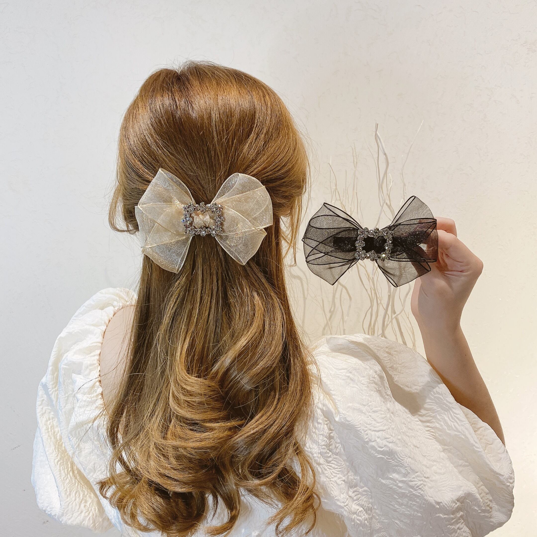 ☆KOREA リボンヘアピン ☆ ゴールド シルバー パール ダイヤモンド エメラルド オパール スパンコール ルビー サファイア ガーネット アクアマリン オニキス 宝石 石 A1031804375238 | fragola