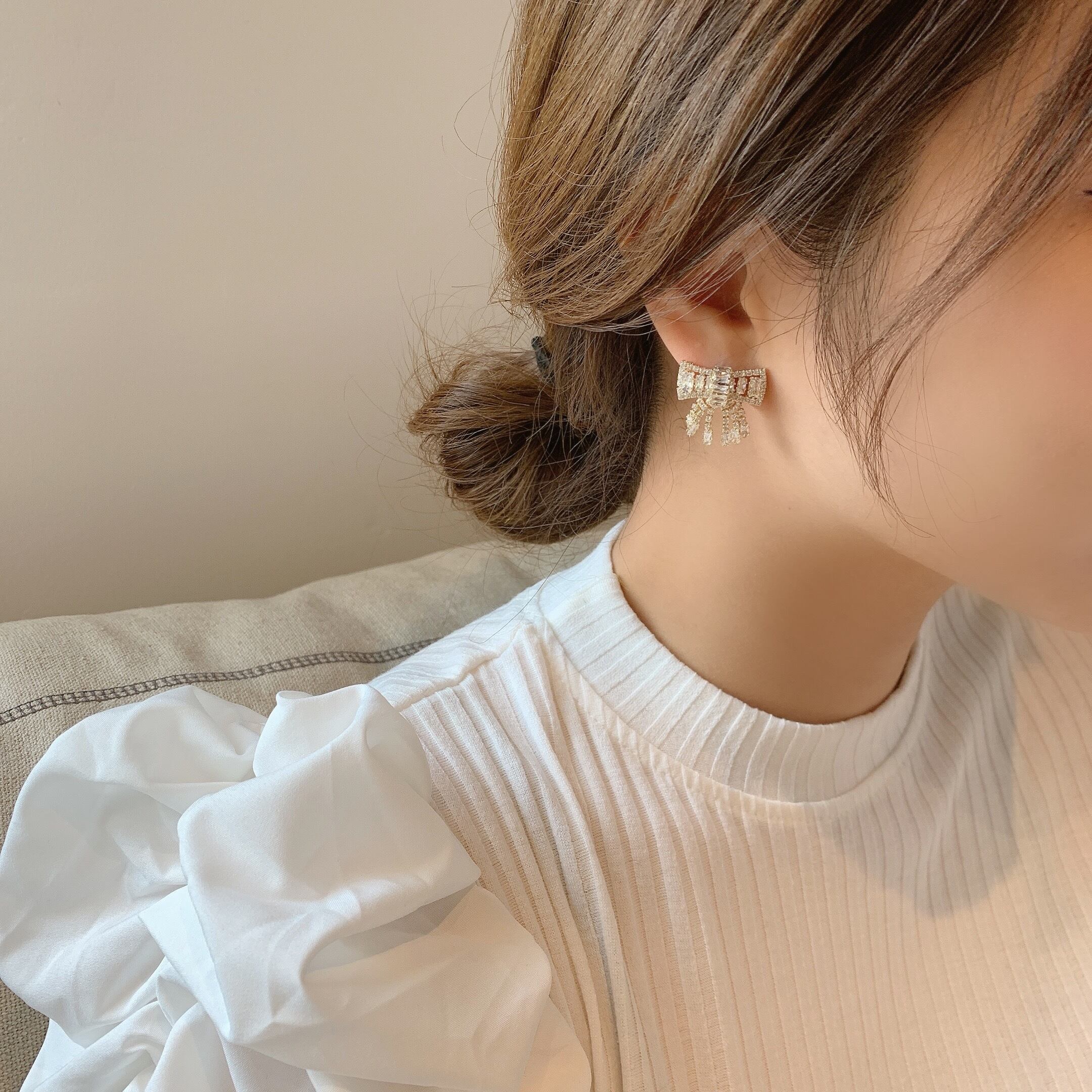 ☆KOREA リボンパールイヤリング 大人ガーリー スウィート キュート カジュアル 真珠 指輪 ☆ ゴールド シルバー パール ダイヤモンド エメラルド オパール スパンコール ルビー サファイア ガーネット アクアマリン オニキス 宝石 石 A1051025254655