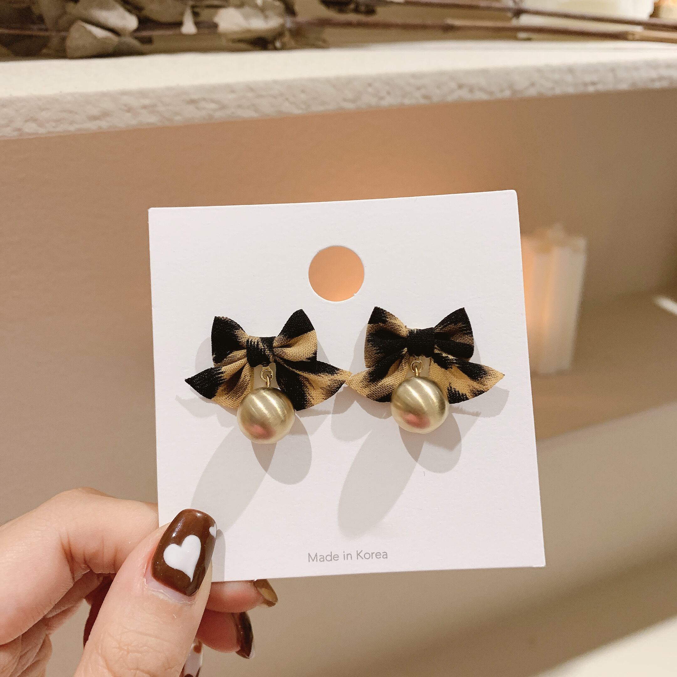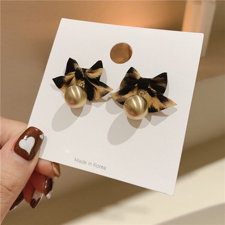 ☆KOREA オータムウィンターレオパードプリント柄パールイヤリング リボン 秋物 冬物 真珠 指輪 ☆ ゴールド シルバー パール ダイヤモンド エメラルド オパール スパンコール ルビー サファイア ガーネット アクアマリン オニキス 宝石 石 A1074984170792 | fragola