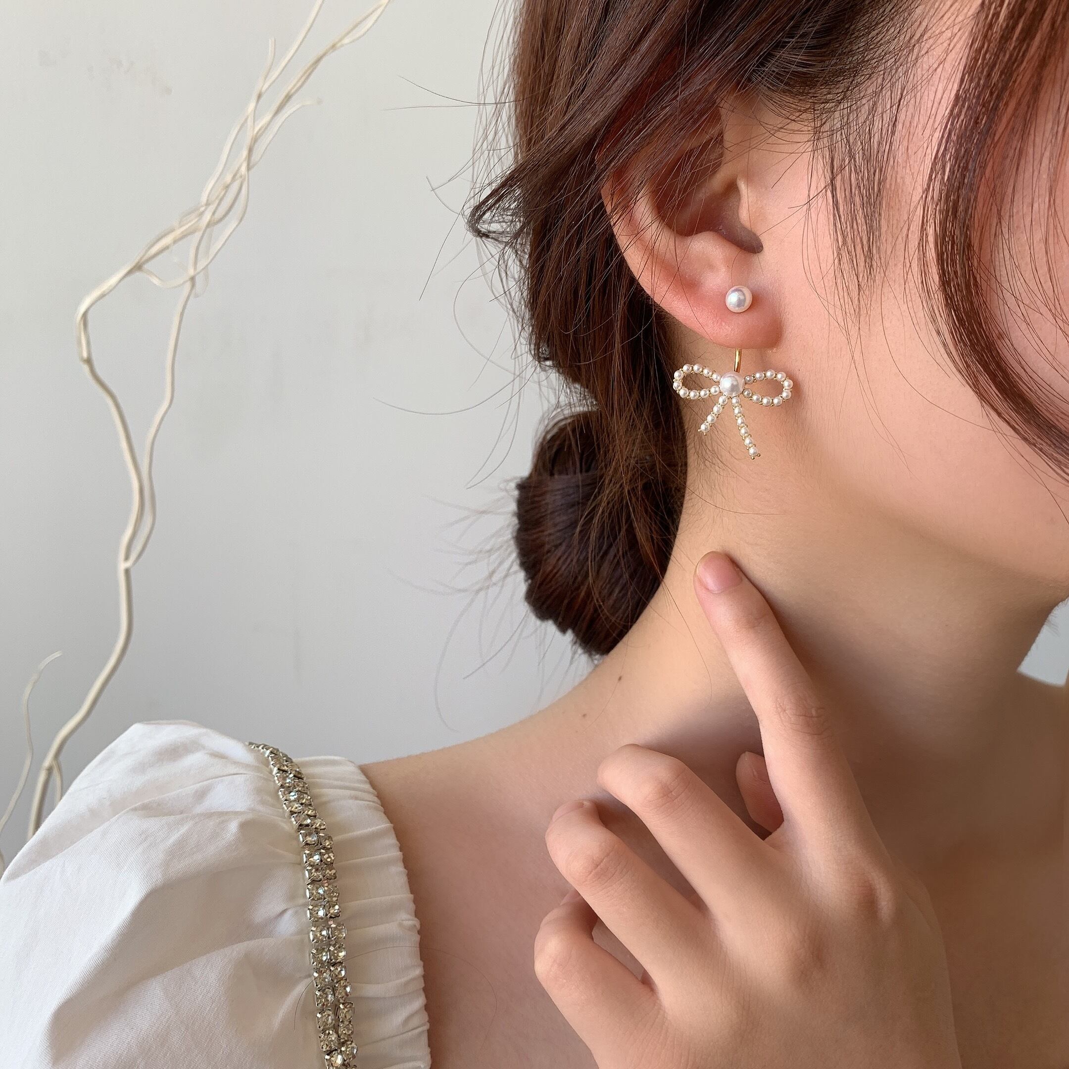 ☆KOREA シルバーリボンパールイヤリング 大人ガーリー スウィート キュート カジュアル 真珠 指輪 銀 ☆ ゴールド シルバー パール ダイヤモンド エメラルド オパール スパンコール ルビー サファイア ガーネット アクアマリン オニキス 宝石 石 A1053309765061 | fragola
