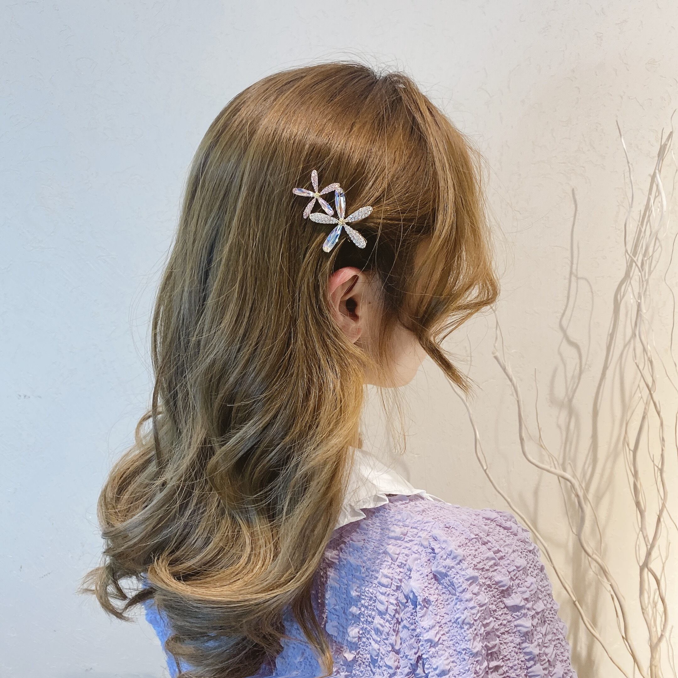 ☆KOREA クリスタルFlowerデザイン ラインストーンレースバックヘアピン アクセサリー フラワーデザイン パープル ☆ ゴールド シルバー パール ダイヤモンド エメラルド オパール スパンコール ルビー サファイア ガーネット アクアマリン オニキス 宝石 石 A107741287739 | fragola