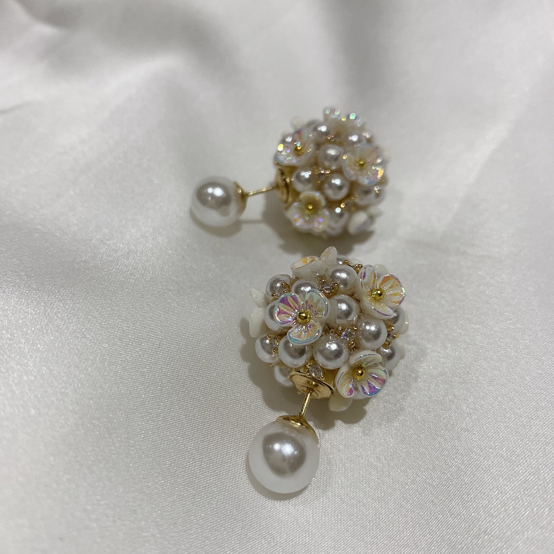 ☆KOREA Flowerデザイン パールスプリングイヤリング シルバーレディース 春物 真珠 指輪 フラワーデザイン 銀 ☆ ゴールド シルバー パール ダイヤモンド エメラルド オパール スパンコール ルビー サファイア ガーネット アクアマリン オニキス 宝石 石 A1011656314008 | fragola