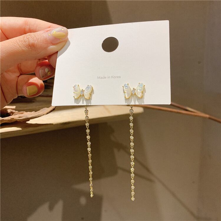 ☆KOREA Butterflyデザイン イヤリング シルバーロング 指輪 銀 ☆ ゴールド シルバー パール ダイヤモンド エメラルド オパール スパンコール ルビー サファイア ガーネット アクアマリン オニキス 宝石 石 A107001817517 | fragola