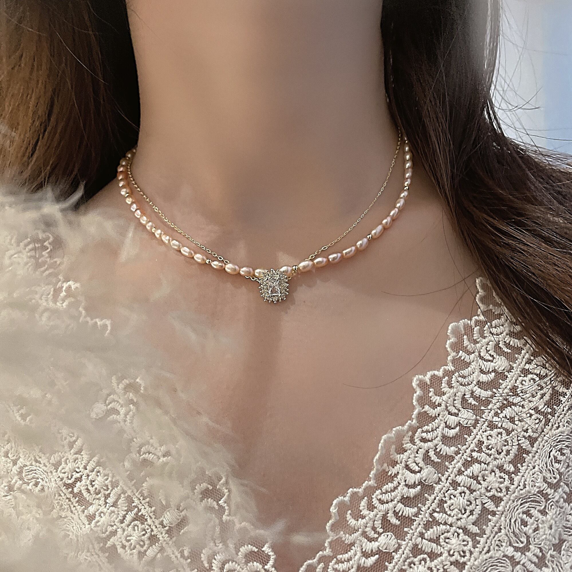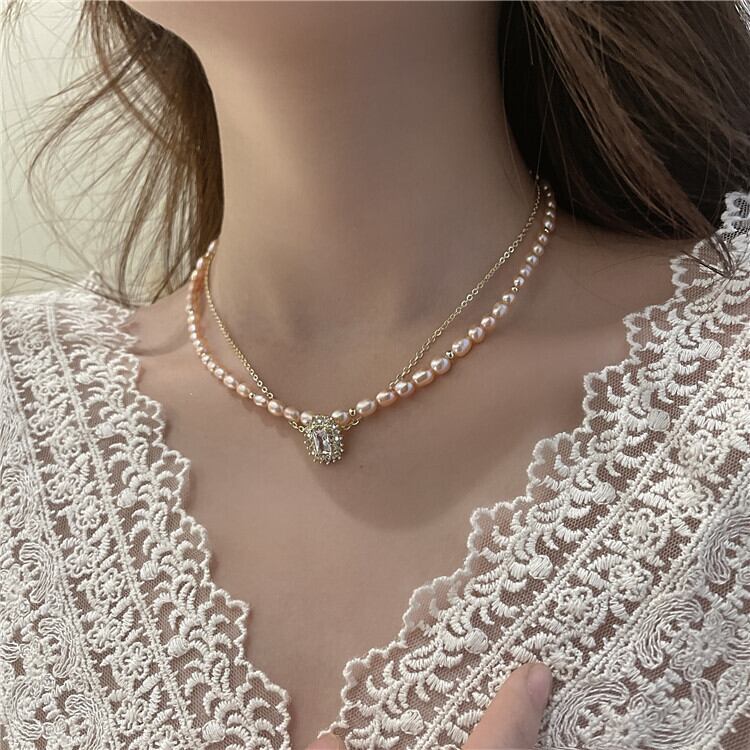 ☆KOREA ダブルパールネックレス チェーン レース ペンダント ナチュラル 真珠 天然 ☆ ゴールド シルバー パール ダイヤモンド エメラルド オパール スパンコール ルビー サファイア ガーネット アクアマリン オニキス 宝石 石 A1022134866715 | fragola