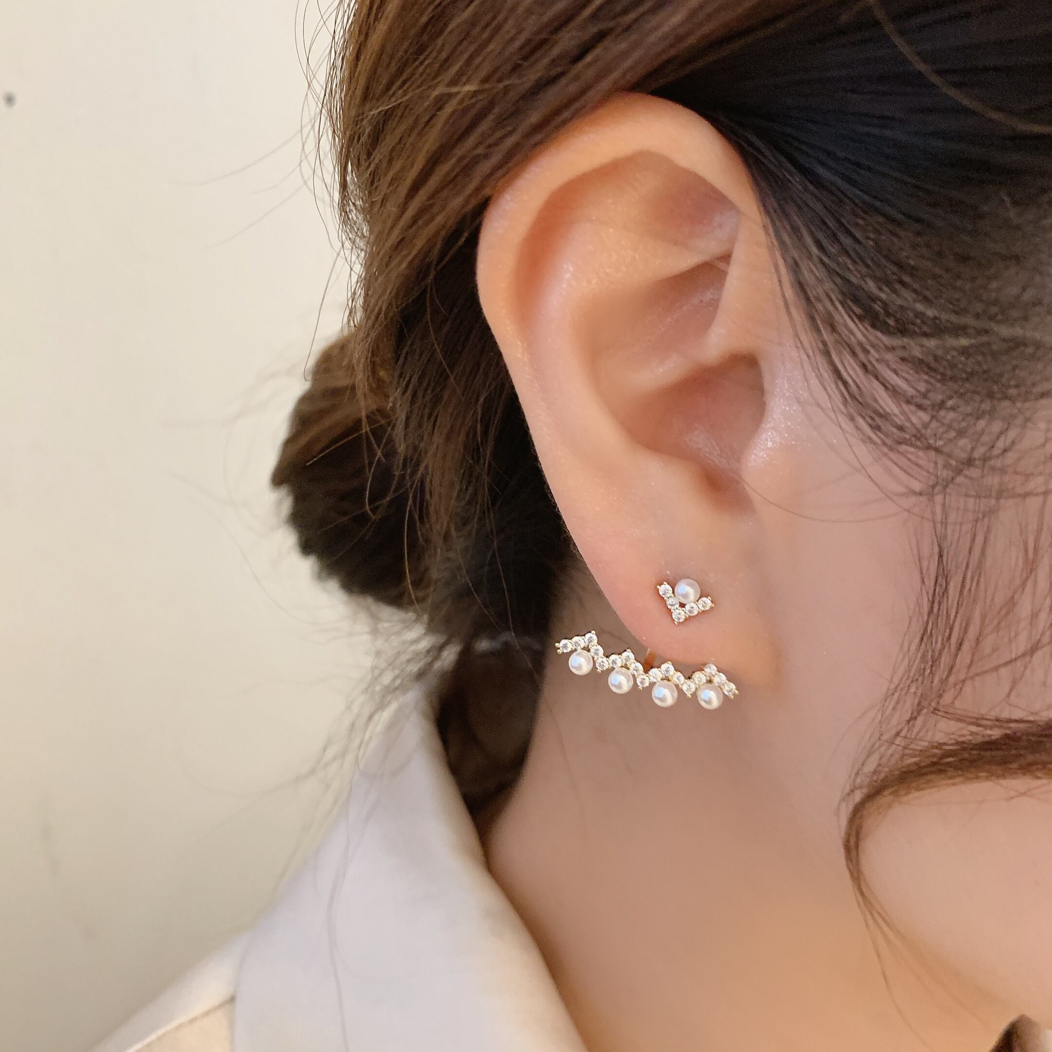 ☆KOREA シルバーラインストーンパールイヤリング 真珠 指輪 銀 ☆ ゴールド シルバー パール ダイヤモンド エメラルド オパール スパンコール ルビー サファイア ガーネット アクアマリン オニキス 宝石 石 A1068852073547 | fragola