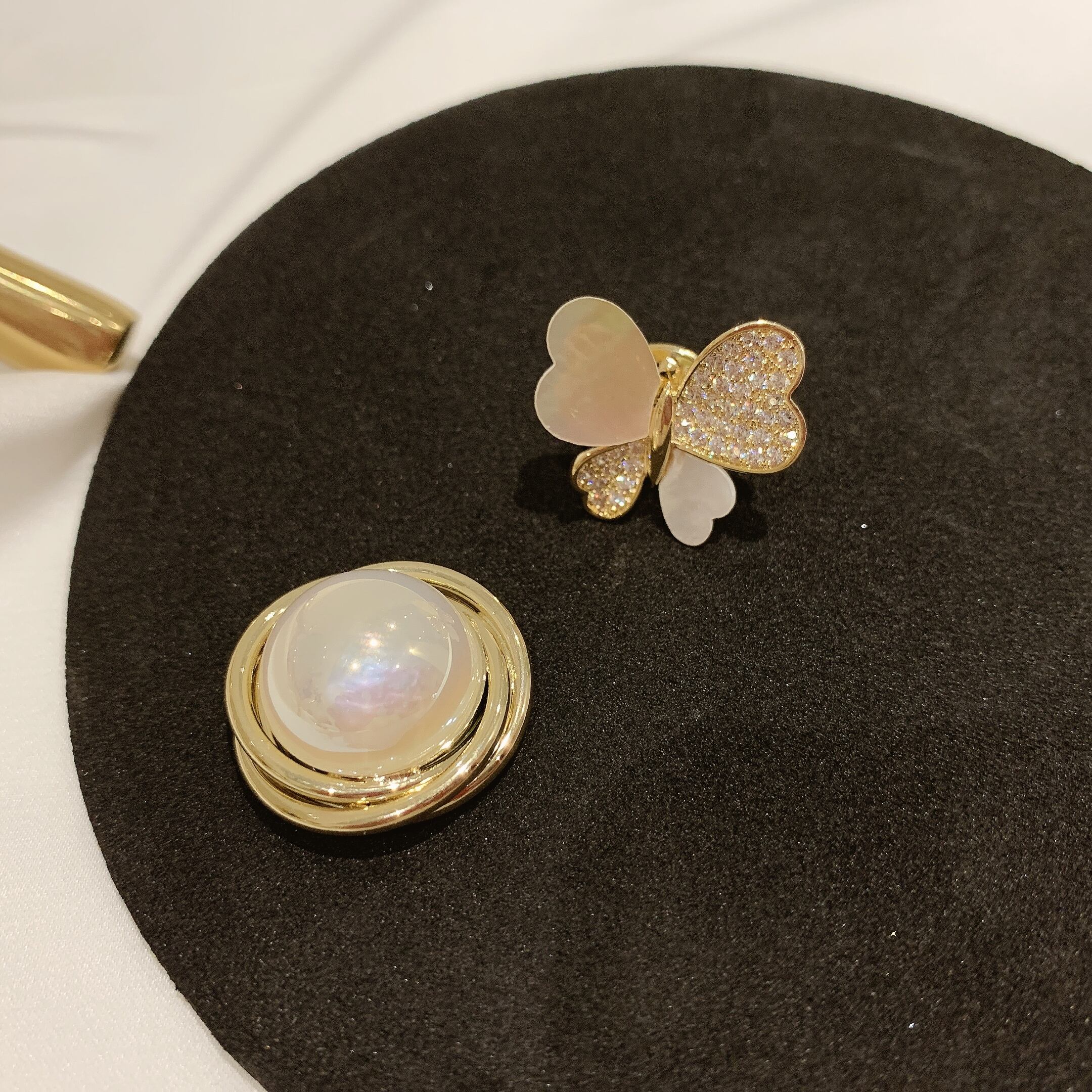 ☆KOREA Butterflyデザイン ブローチ パールバックルサマー 夏物 真珠 ☆ ゴールド シルバー パール ダイヤモンド エメラルド オパール スパンコール ルビー サファイア ガーネット アクアマリン オニキス 宝石 石 A1089606317851 | fragola